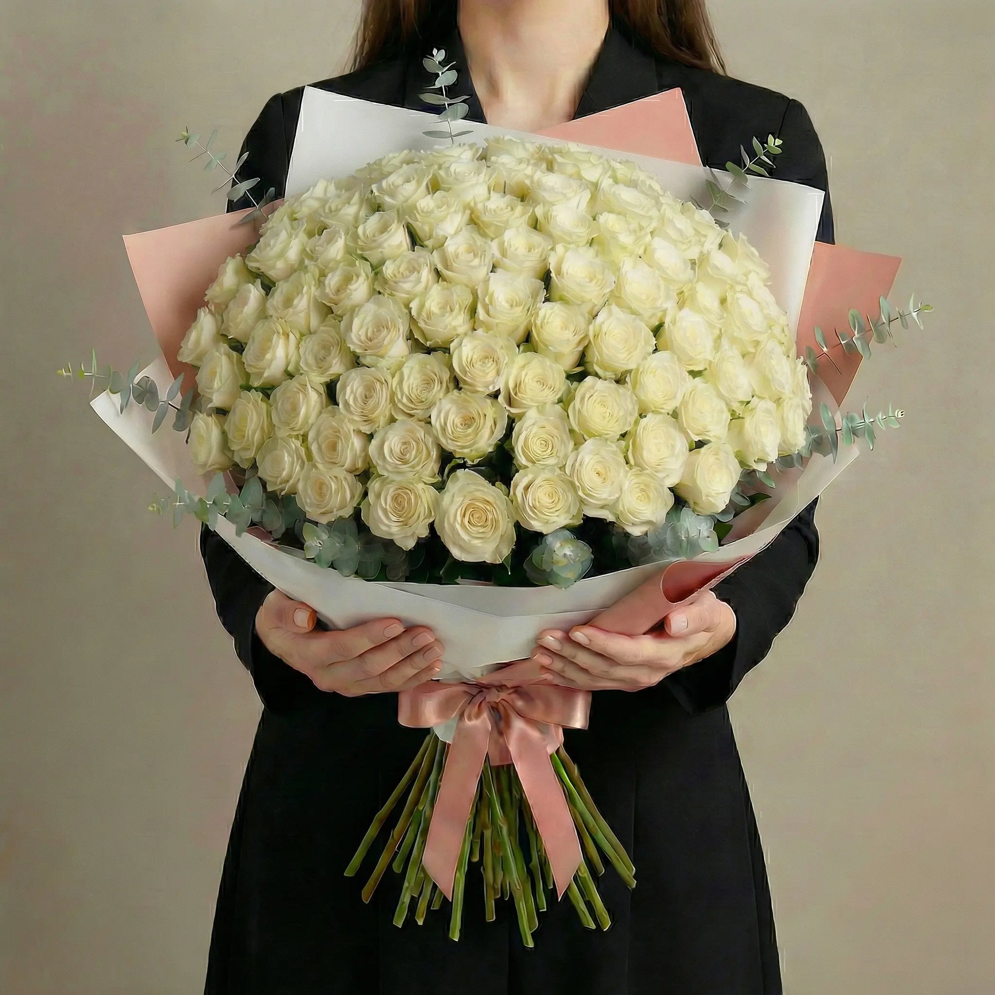 Ramo de Alta Gama de 100 Rosas Cor-de-Pêssego